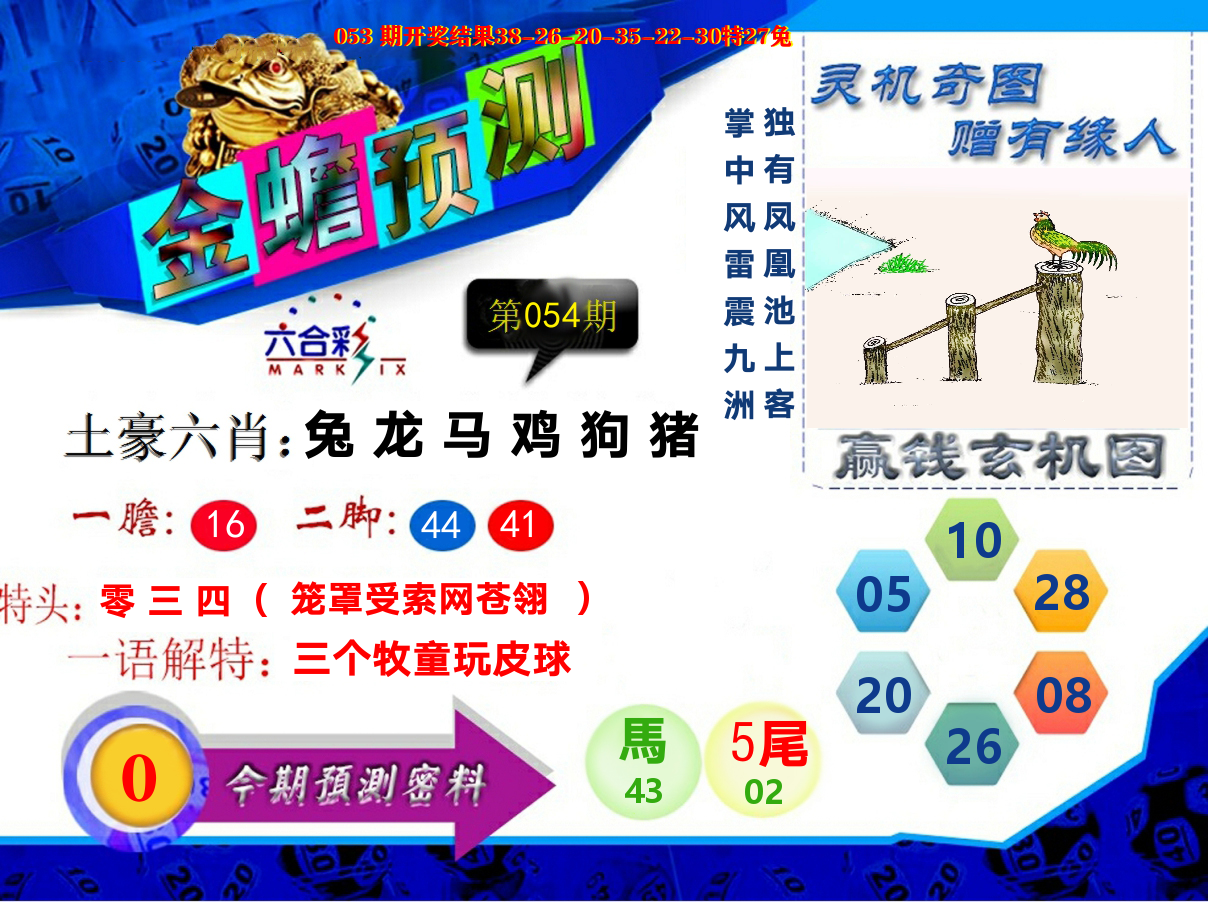 052期⑤肖【猴牛兔鸡马】开 猴23 准