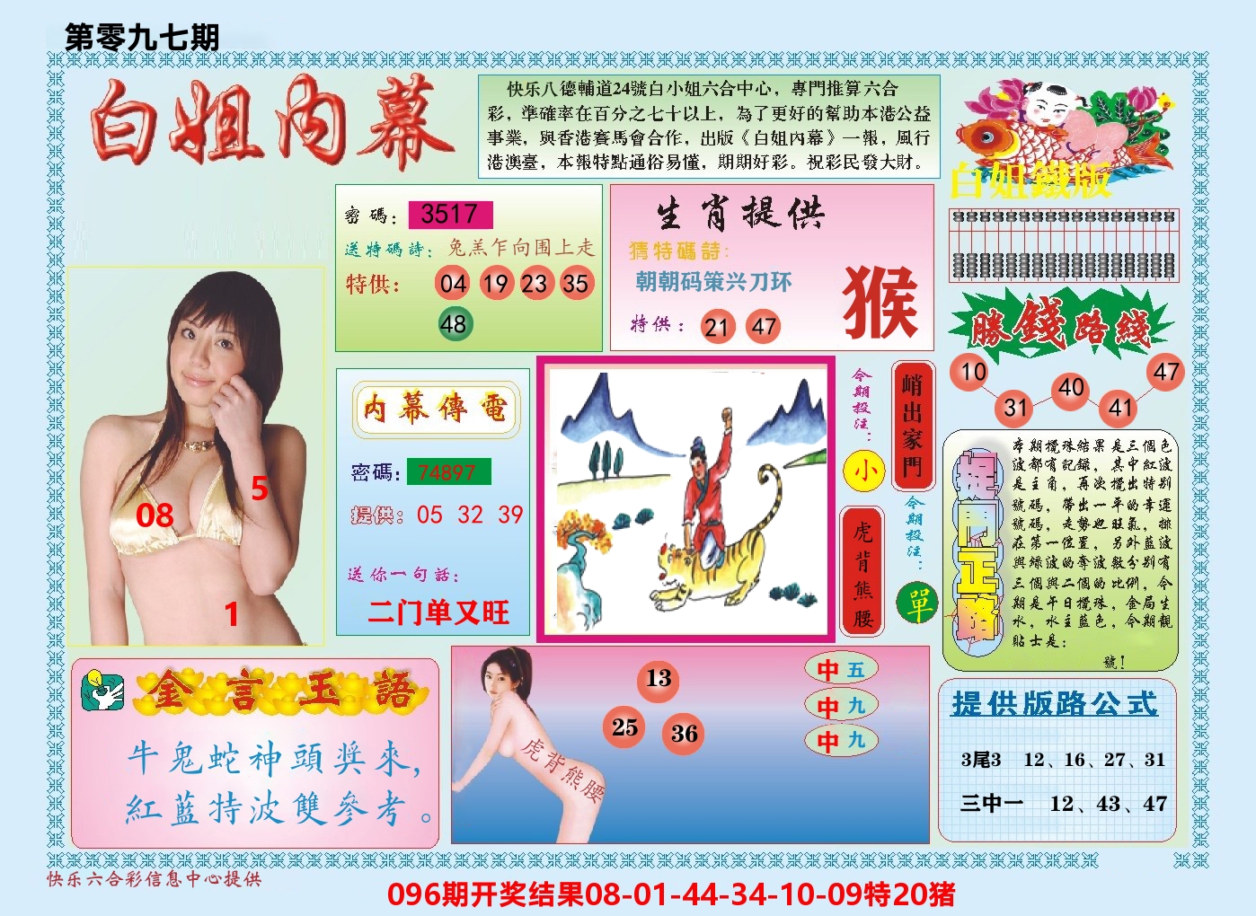 096期③肖【狗兔猪】开 猪20 准